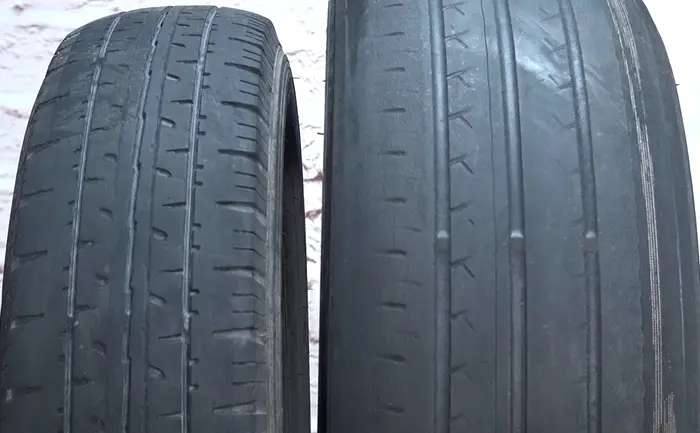 次に「偏った摩耗」がないかを見ます。タイヤの外側だけが極端に減っていたり、中央だけが減っていたりする場合は、空気圧やアライメントの影響が考えられます。