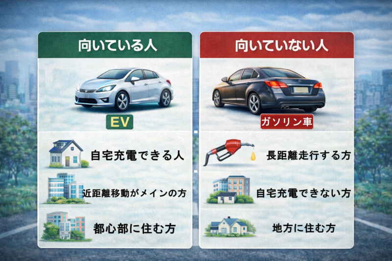 ここでは、EVが向いている人と、まだ慎重に考えた方がいいケースを整理してみます。